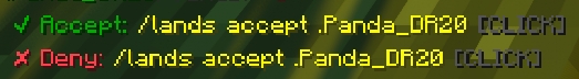 ACEPTAR (BEDROCK): Si eres de bedrock tienes que confirmar con un comando /lands accept si quieres denegar usa el comando /lands deny